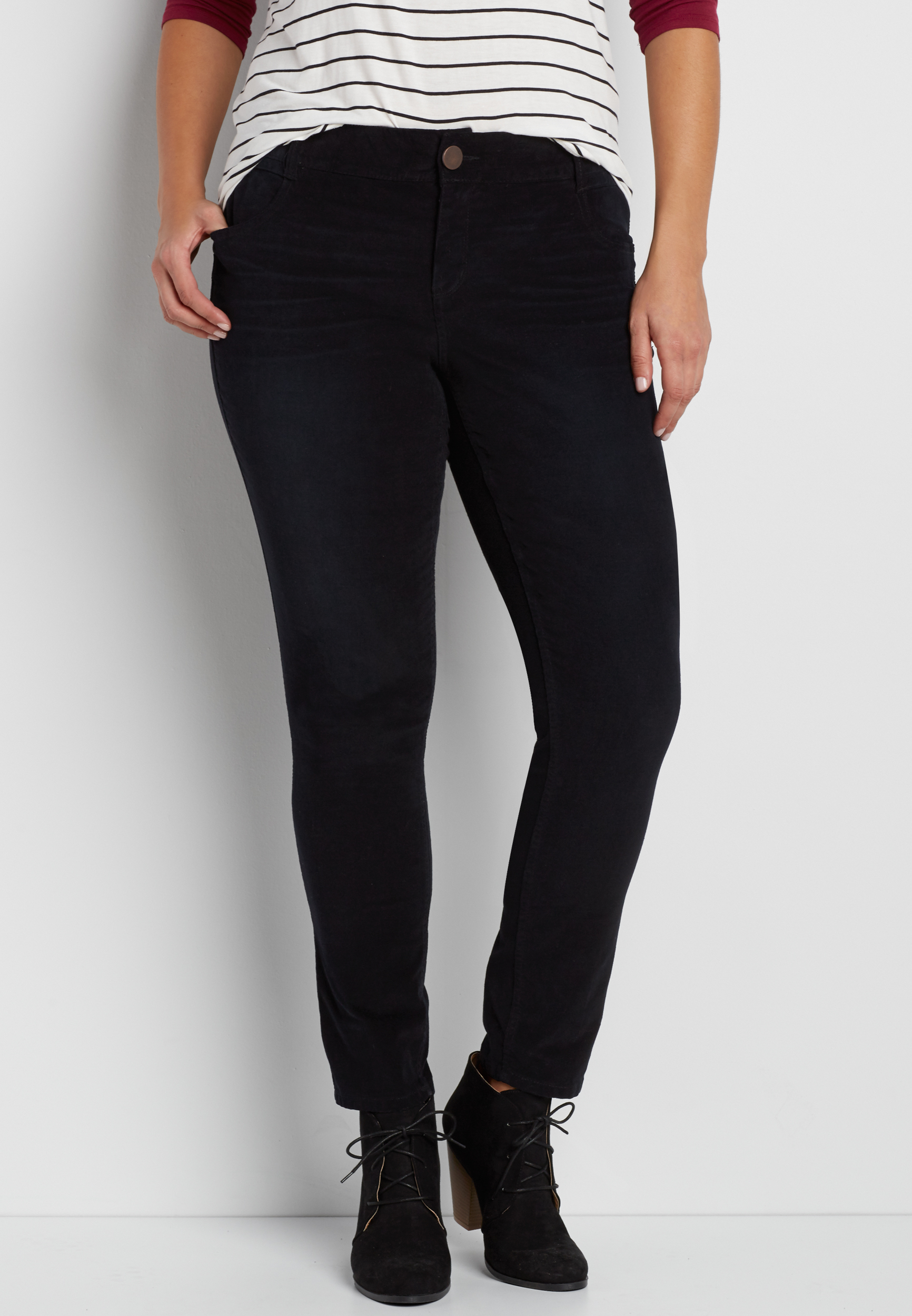 plus size skinny IT fit corduroy pants in black maurices